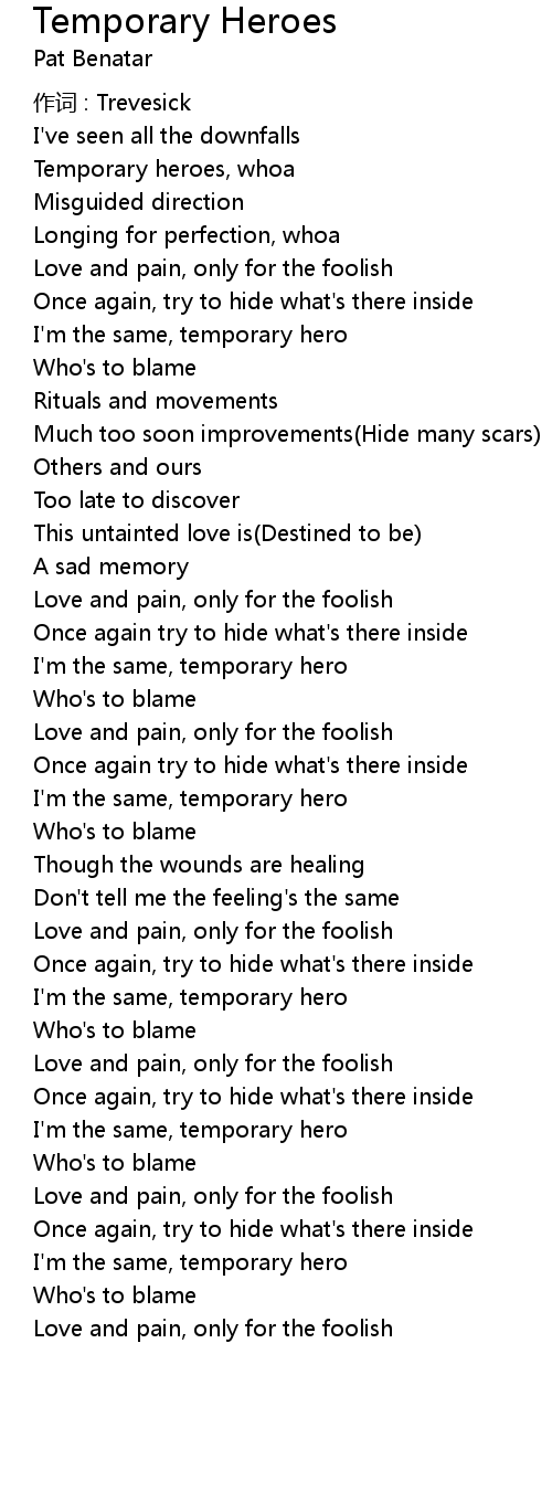 | Temporary heroes, whoa | |