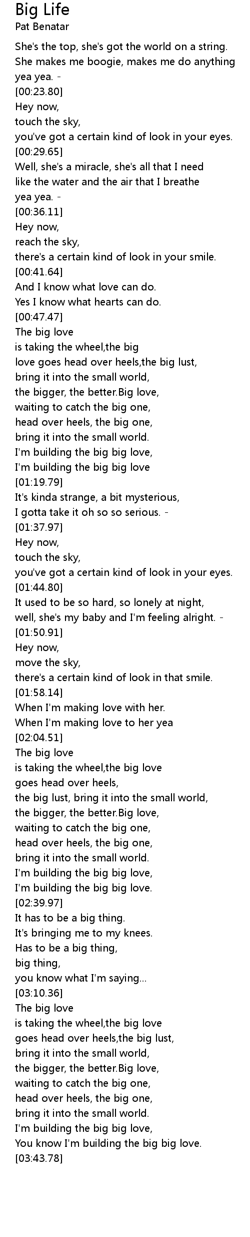 love goes head over heels,the big lust, |
