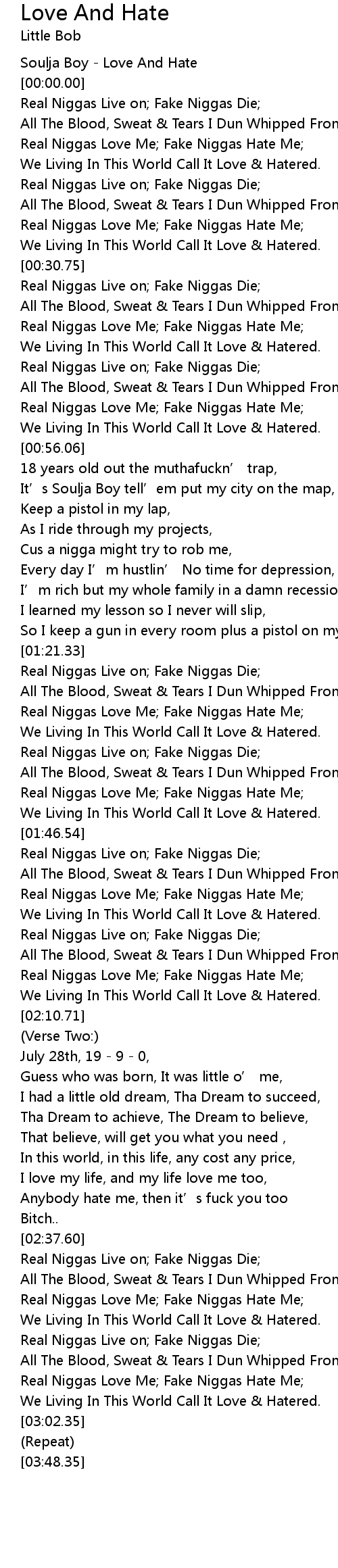| [02:44.35] | Real Niggas Love Me; Fake Niggas Hate Me; |