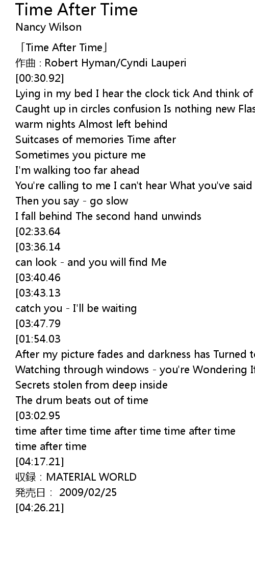 | [00:01.92] | 「Time After Time」 |