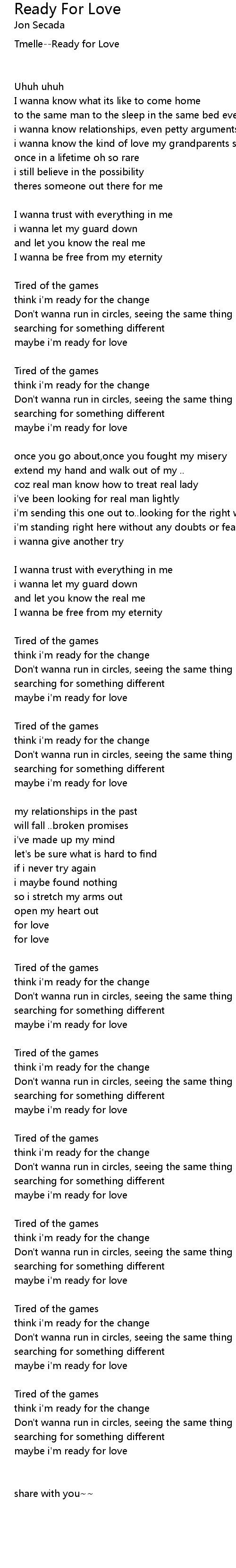 maybe i'm ready for love |