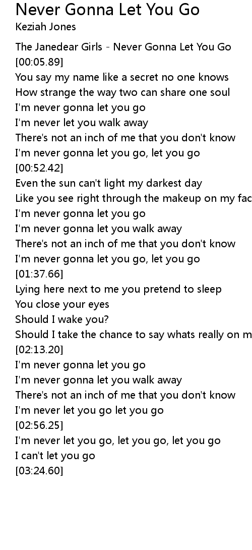 The Janedear Girls - Never Gonna Let You Go |