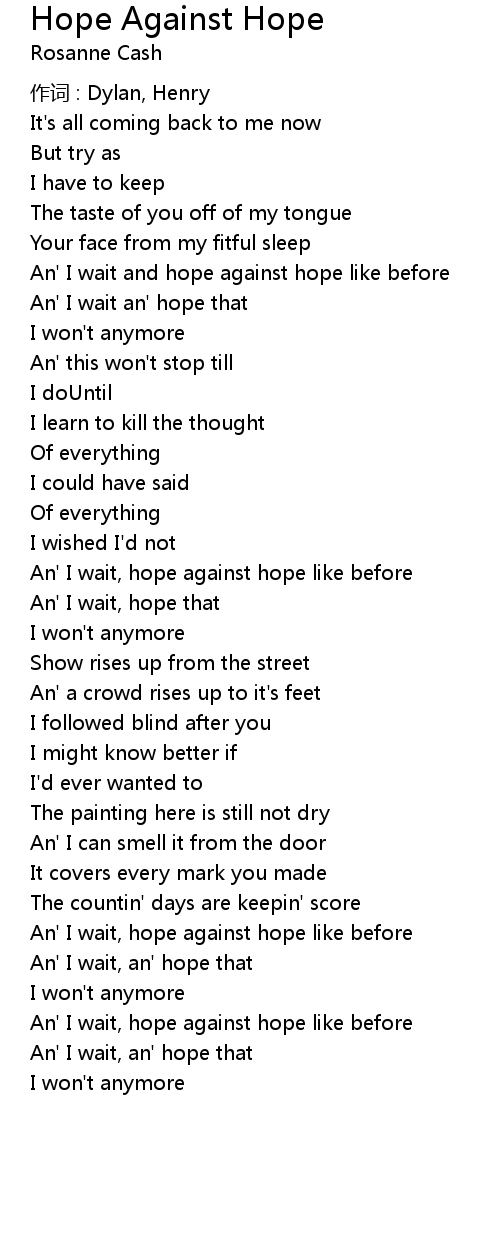 | An' I wait, hope against hope like before | |