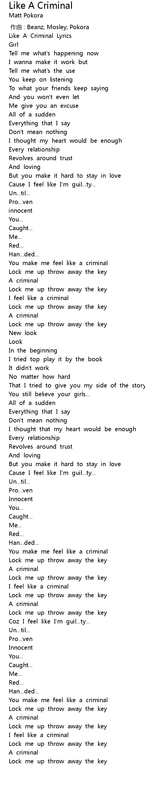 | [00:06.57] | Like A Criminal Lyrics |