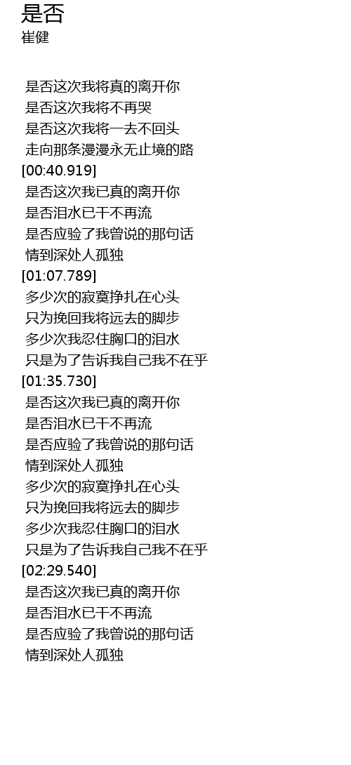 | [01:42.730] | shi fou lei shui yi gan bu zai liu |