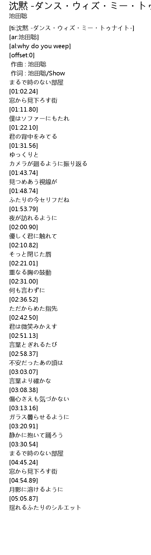 | [00:01.00] | 作词 : 池田聡/Show |