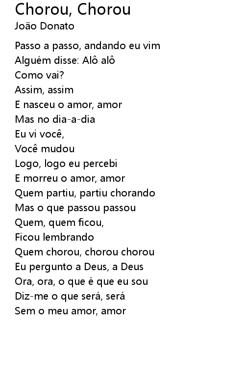 | Song | Chorou, Chorou |