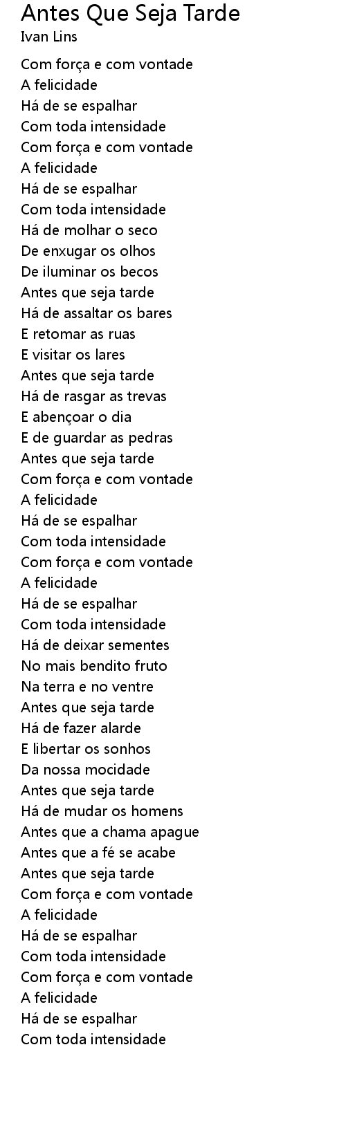 Antes Que Seja Tarde Lyrics