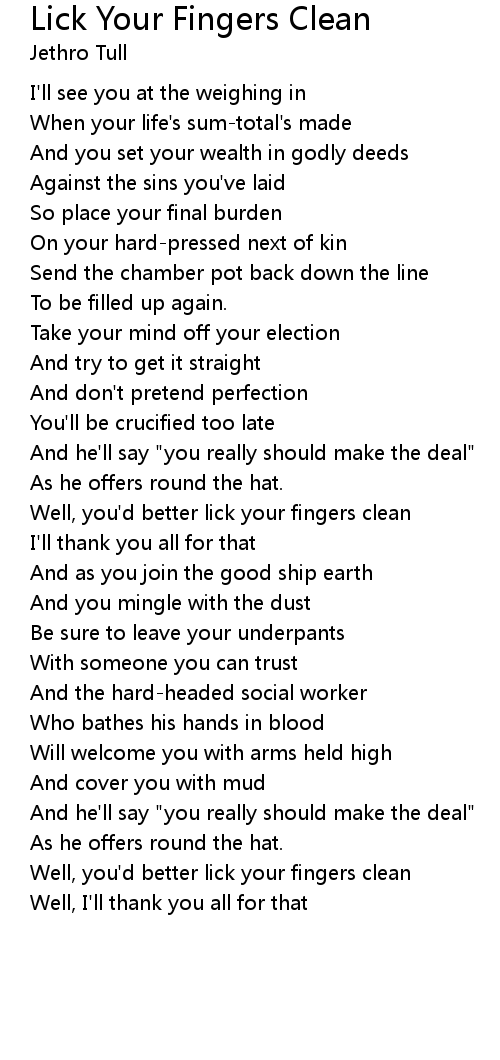 Well, you'd better lick your fingers clean |