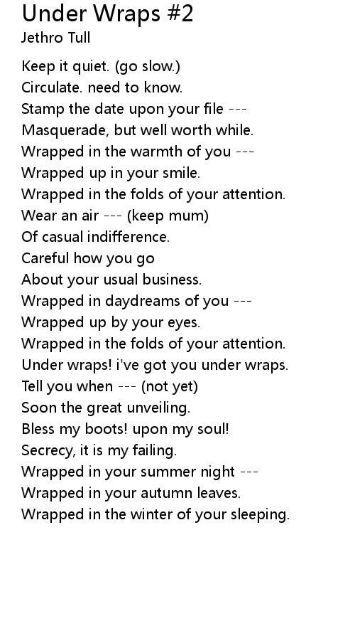 Under wraps! i've got you under wraps. |