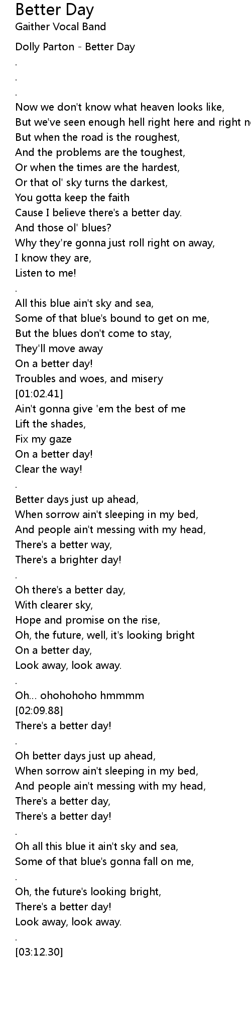 | [00:00.19] | Dolly Parton - Better Day |