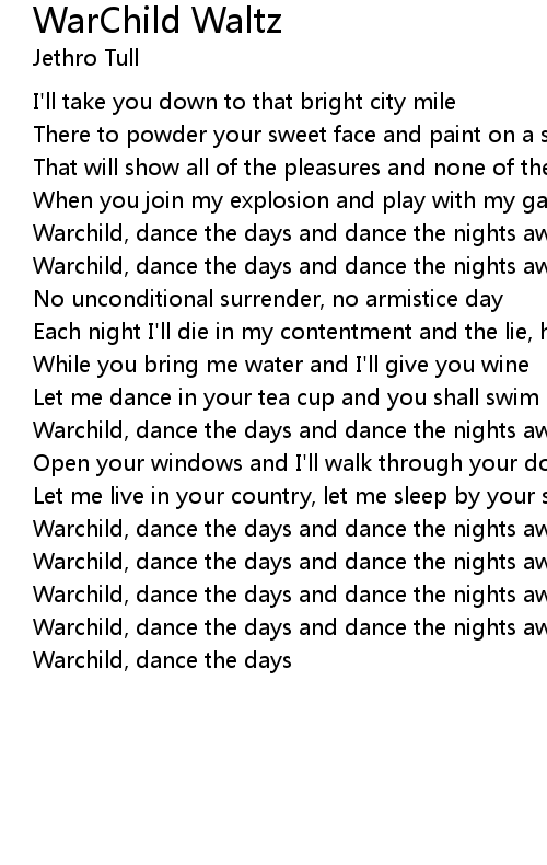 Warchild, dance the days and dance the nights away |