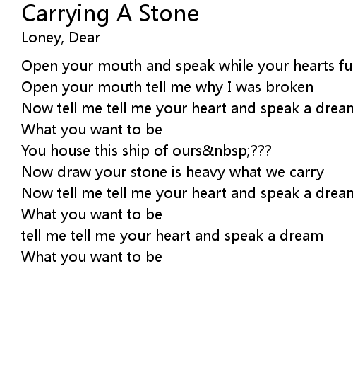 | Song | Carrying A Stone |