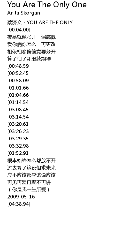 | [00:00.00] | cai ji wen YOU ARE THE ONLY |