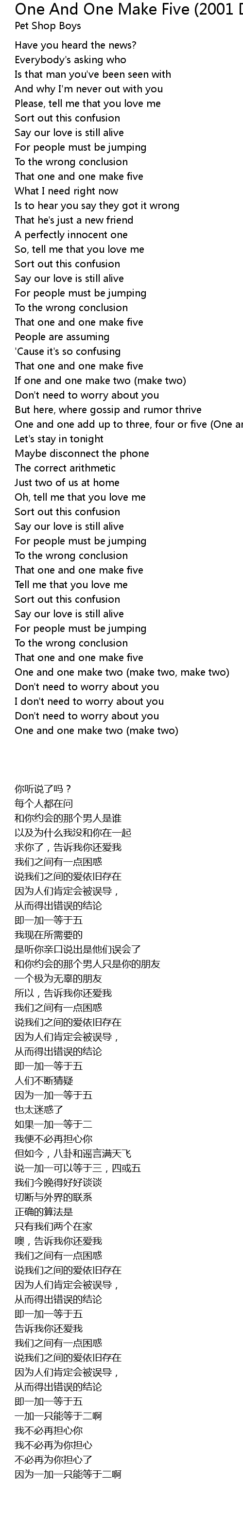 One and one make two (make two) |