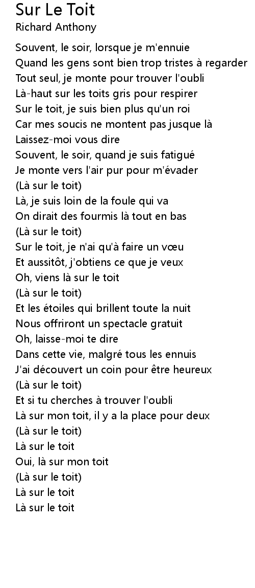 | Sur le toit, je n'ai qu'à faire un vœu | |