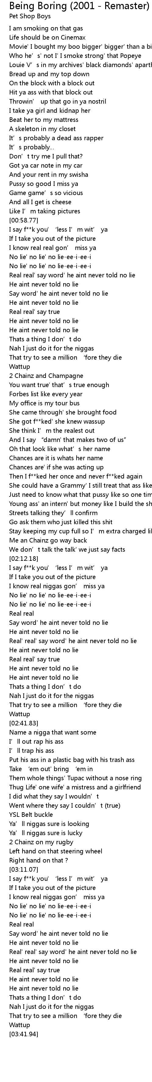 | [01:48.38] | Then I f**ked her once and never f**ked again |