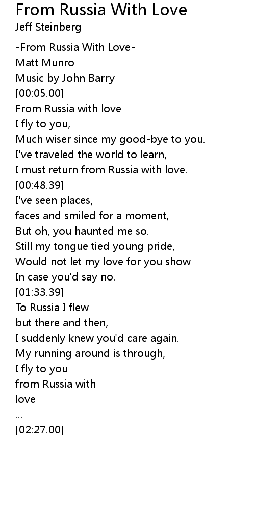 | [00:37.47] | I must return from Russia with love. |