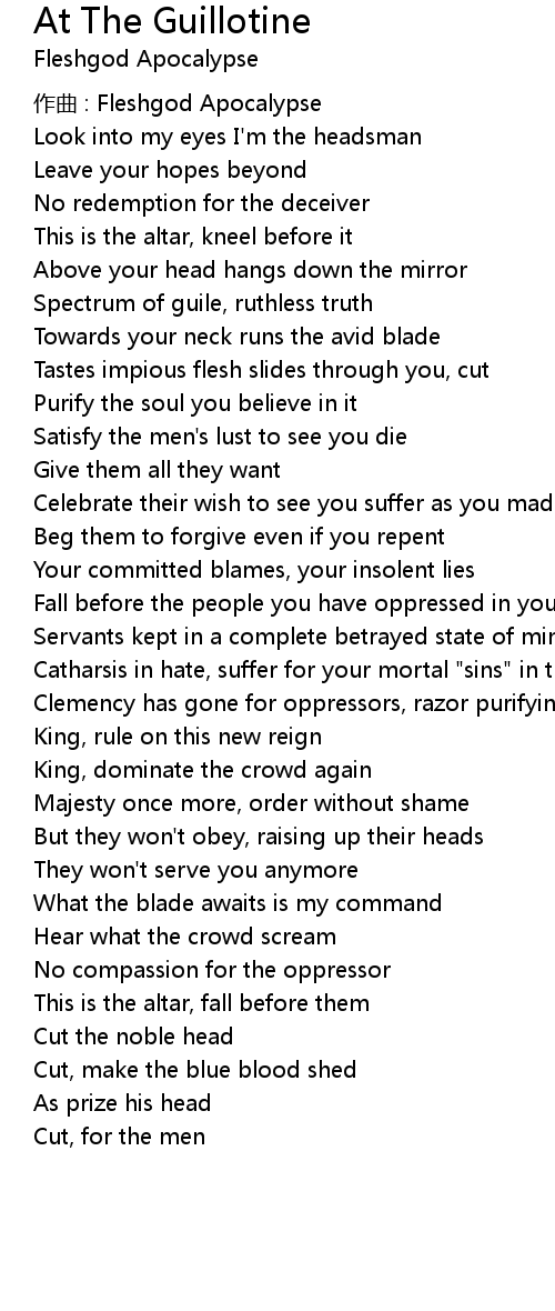 | Clemency has gone for oppressors, razor purifying, your redemption | |