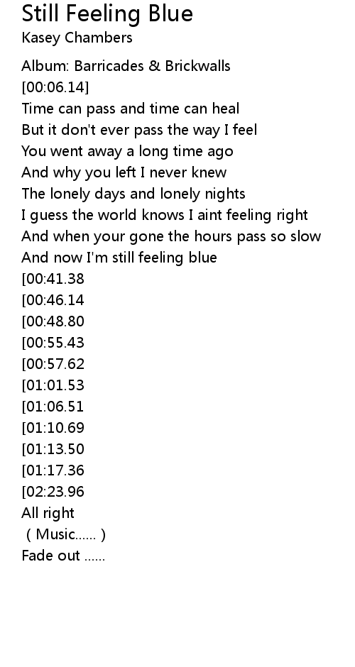 | [02:28.17][02:23.96][01:22.32] | And now I'm still feeling blue |