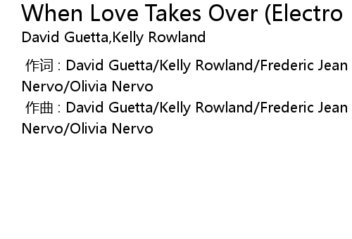 | [00:00.000] | 作词 : David Guetta/Kelly Rowland/Frederic Jean Riesterer/Miriam Nervo/Olivia Nervo |
