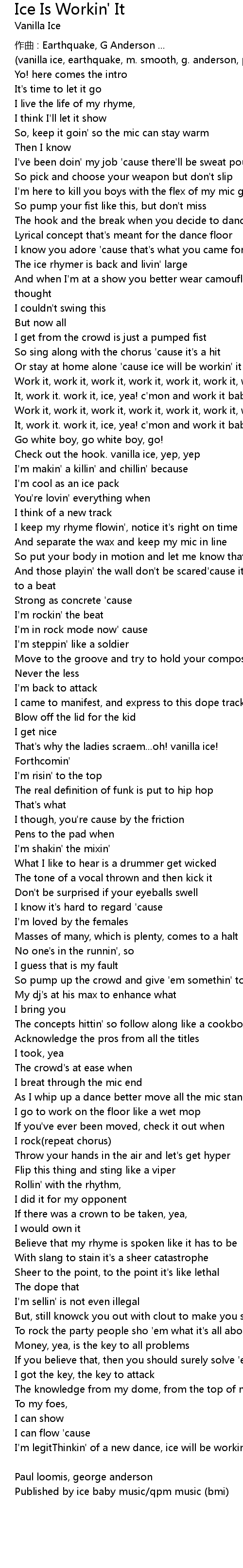 | Published by ice baby music/qpm music (bmi) |
