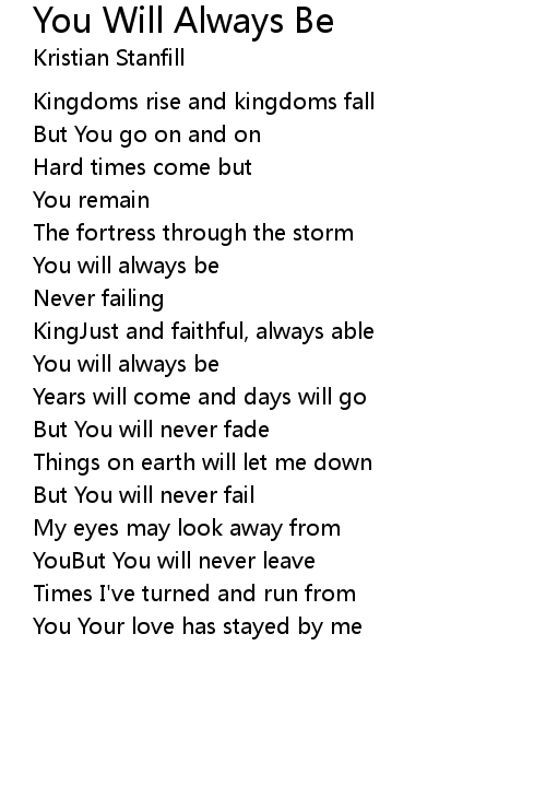 | Song | You Will Always Be |