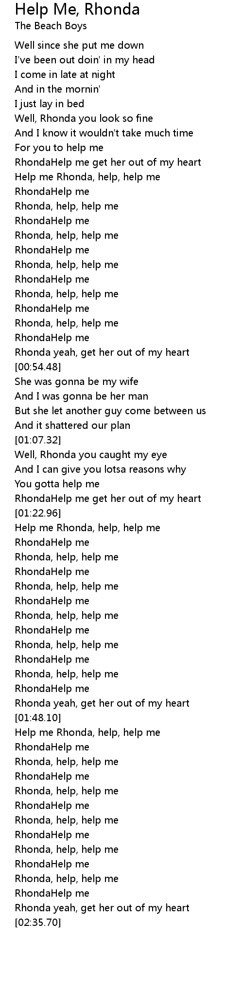 Help me Rhonda, help, help me |