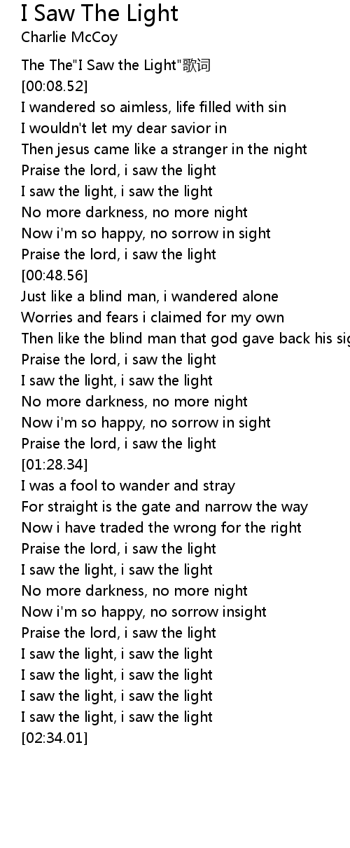 | [00:05.73] | The The" I Saw the Light" ge ci |