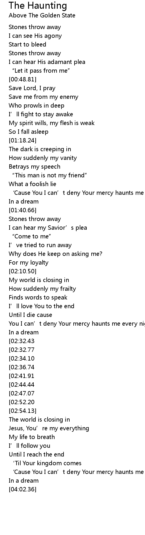 | [02:26.77] | You I can’t deny Your mercy haunts me every night |