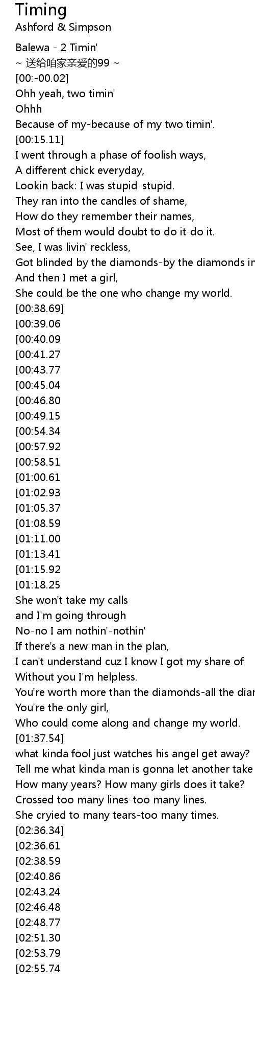 | [02:14.66][01:15.92] | I gotta stop it with my stupid two timin'. |