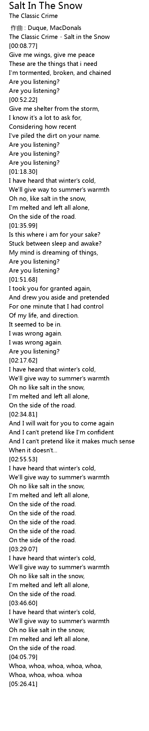 | [03:53.45] | Oh no like salt in the snow, |