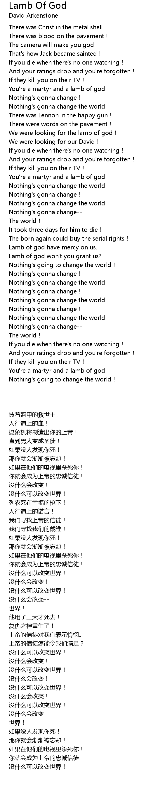 | [02:04.410] | Nothing' s gonna change the world! |