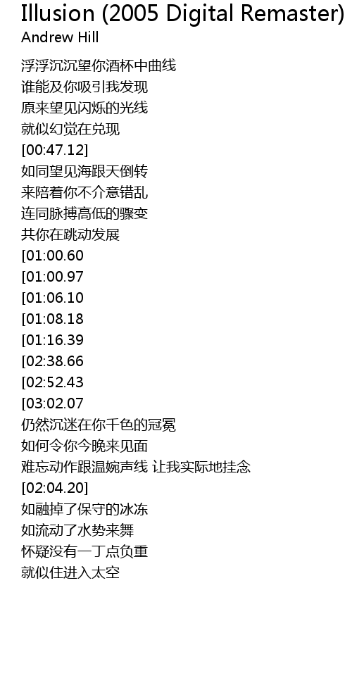 | [02:18.07][01:00.97] | 幻灯下 幻光下 幻彩下 |