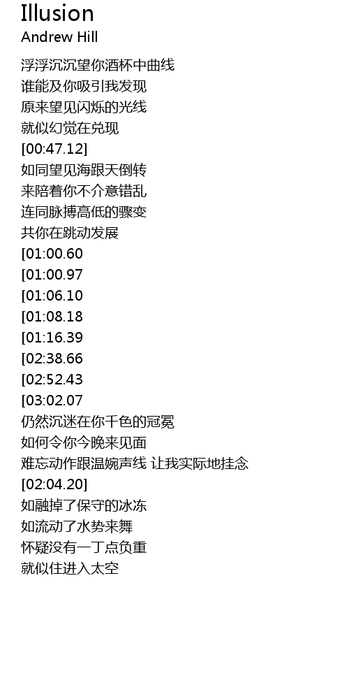 | [00:44.74] | 就似幻觉在兑现 |