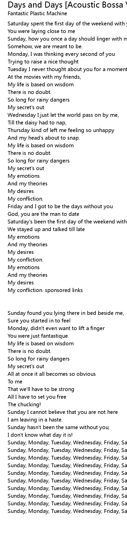 Sunday, Monday, Tuesday, Wednesday, Friday, Saturday, |
