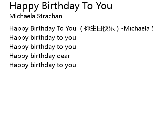 | [00:00.00] | Happy Birthday To You ni sheng ri kuai le Michaela Strachan |