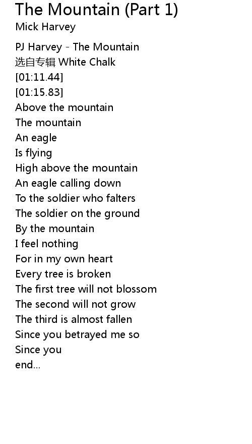| [01:05.05] | PJ Harvey The Mountain |