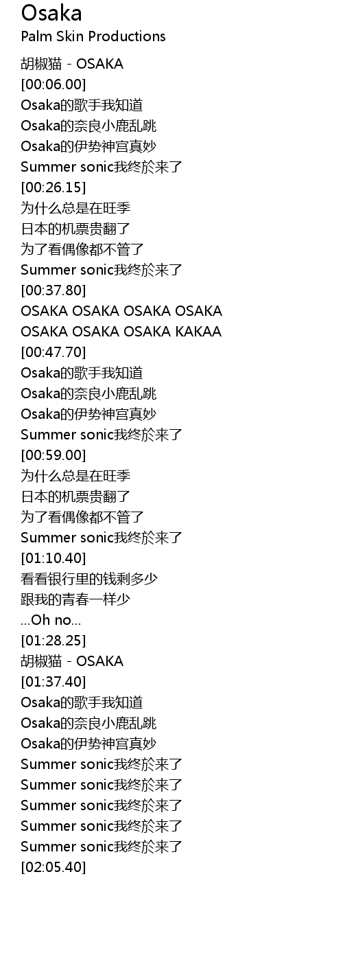 | [00:02.00] | 胡椒猫 - OSAKA |