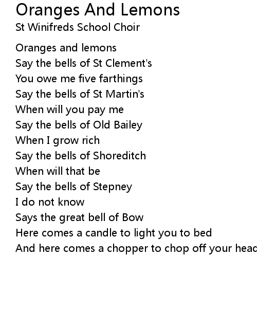 | Song | Oranges And Lemons |