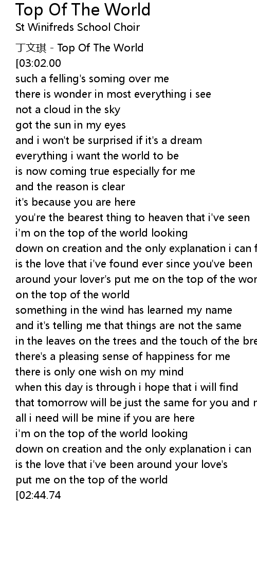 | [00:00.21] | 丁文琪 - Top Of The World |