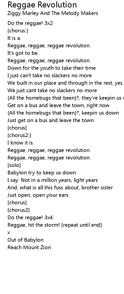 Reggae, reggae, reggae revolution. |
