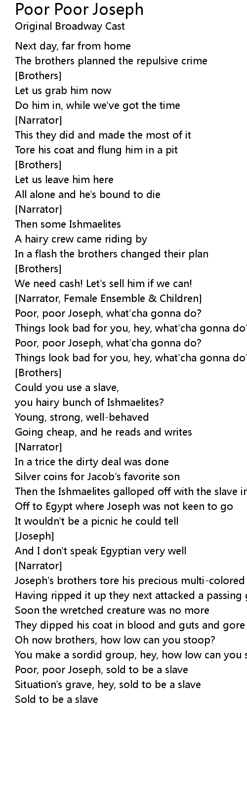 Poor, poor Joseph, what'cha gonna do? |