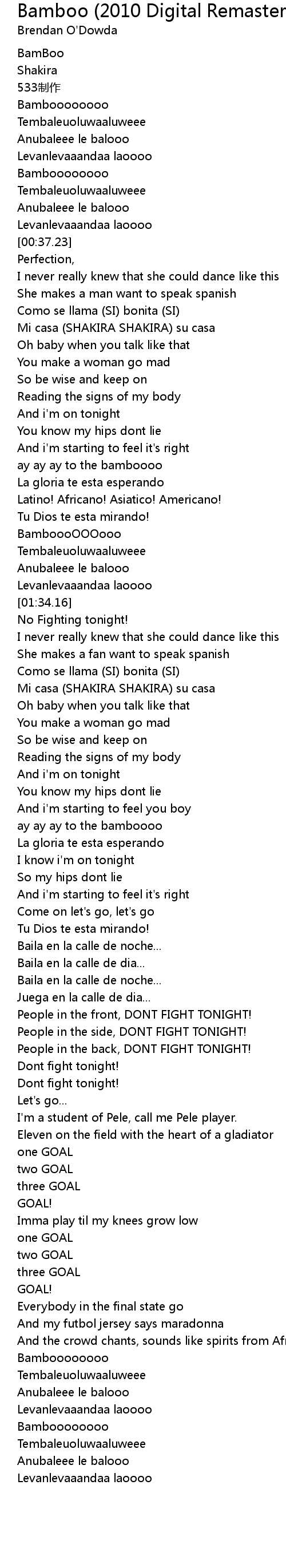 | [00:48.19] | Mi casa (SHAKIRA SHAKIRA) su casa |