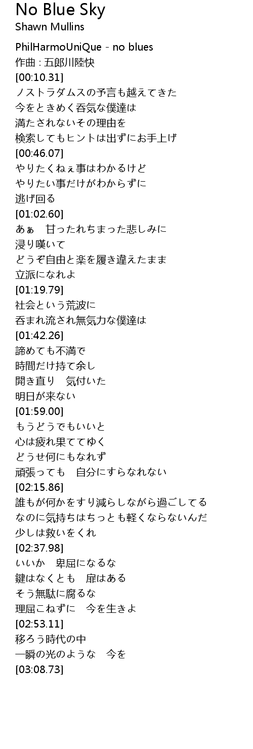 | [00:01.31] | PhilHarmoUniQue no blues |