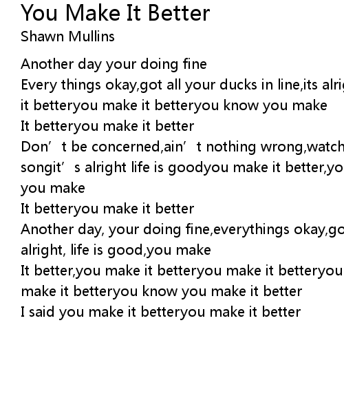 | Every things okay, got all your ducks in line, its alright, life is good, you make it betteryou make it betteryou know you make | |