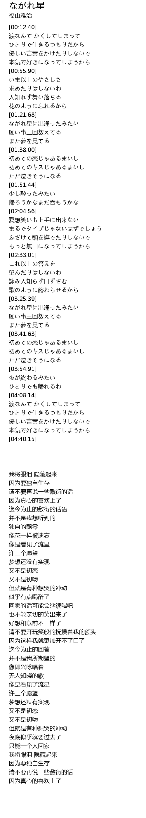 | [03:30.42] | ながれ星に出逢ったみたい |