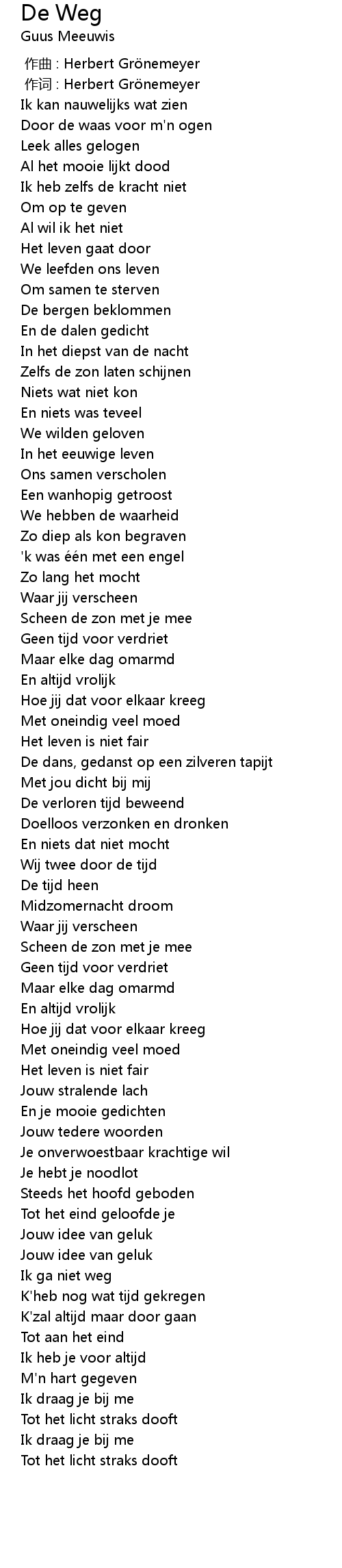 | Song | De Weg |