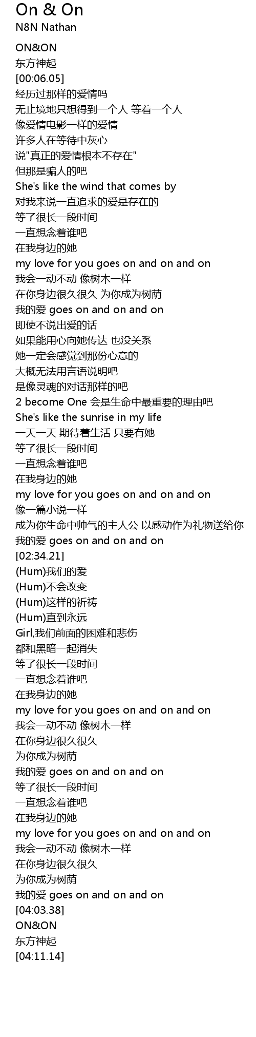 | [01:04.35] | my love for you goes on and on and on |