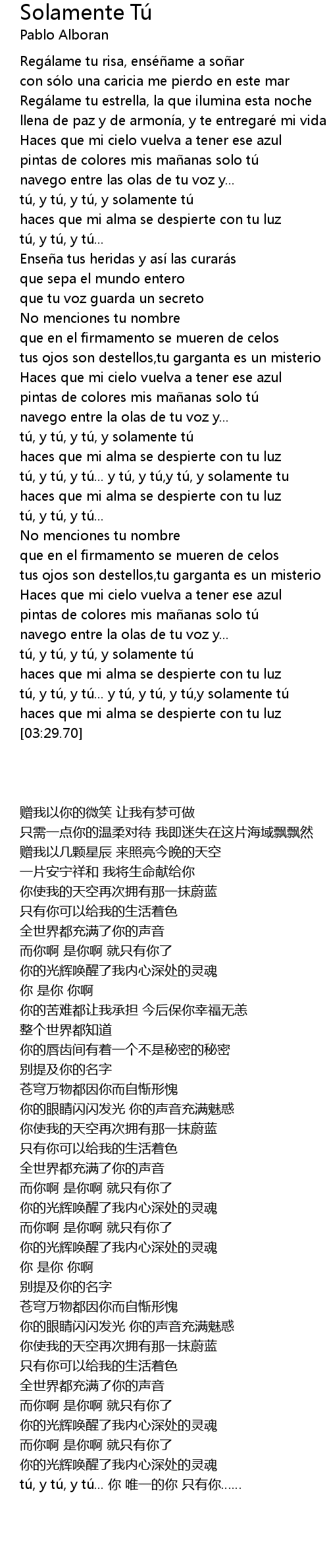| [03:16.04] | tú, y tú, y tú... y tú, y tú, y tú,y solamente tú |